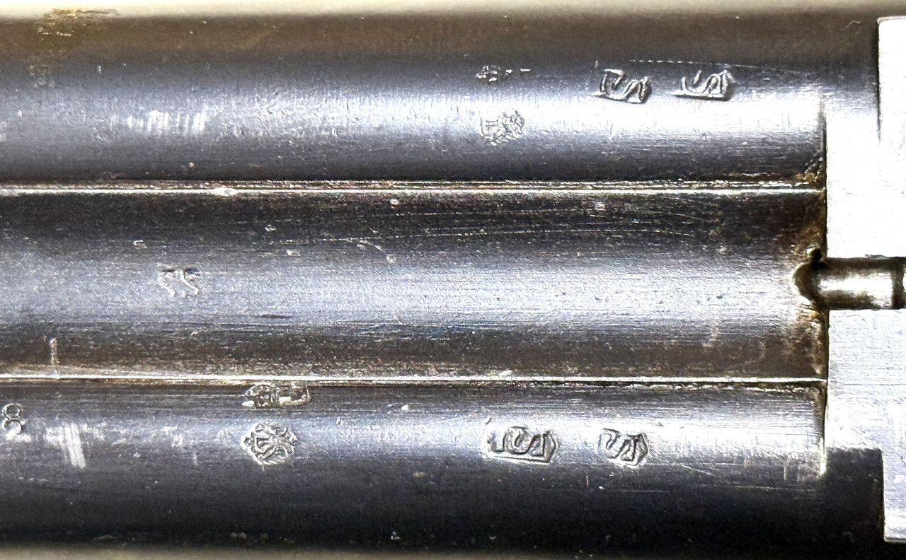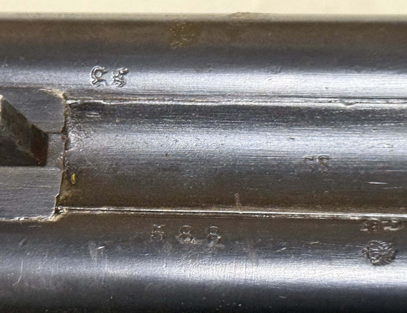 The "U crown" and "G crown" and 118/35 are German proof marks. The 118/35 is the original plug gauge measurement of the bore stated in bore gauge - 118.35 gauge.