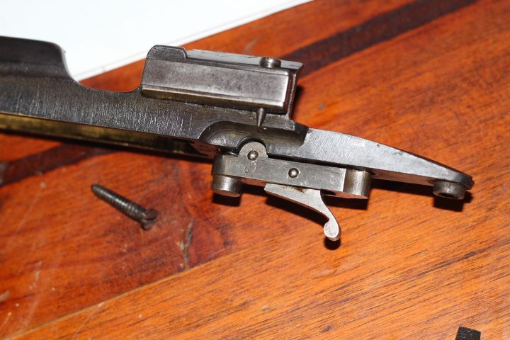 I sent my Mauser .308 to the gunsmith to have some mounts fitted and it came back reblued. Looks like there was a bit of a slip while fitting the mounts. Now the trigger for some reason, when not set, is ridiculously heavy. Not sure whether he has played wit it at all. I am sure this has been discussed somewhere but I couldn't find it, so does anyone have any advice before I dive in and try an lighten it up at all? There is an image below, the front "trigger" holds the horn trigger guard on and typically faces the other way.