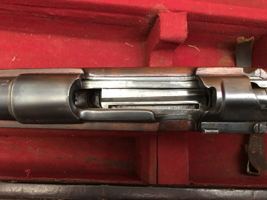 Its a beautiful rifle Eagle. Mauser knew how to put together a beautiful rifle. It is interesting how some adaptations were done. The Jeffery in the earlier photos is serial number 16708 and mine is 16706 and they look to have been done a bit differently. Mine has a pretty large scallop at the receiver end and the charger opened and shaped but not removed like the earlier photos.