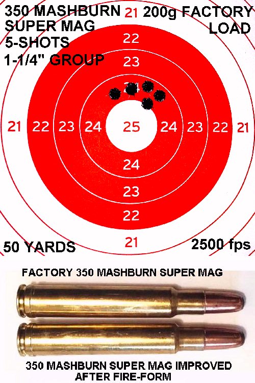 I have over 400 sets of reloading dies. I don't have the exact 350 Mashburn Super Magnum dies, but I have a set of 350 Apex Magnum dies, and a set of 35 Ackley Magnum dies, so I can mix and match to reload.
